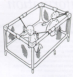 leurs vêtements se sont coincés dans le parc. Pour éviter que le bébé ne s'étrangle, il faut enlever les jouets suspendus en travers le parc: lorsque le bébé commence à se soulever sur ses mains, sur ses genoux ou lorsqu'il a cinq mois, selon la circonstance qui prévaut. |